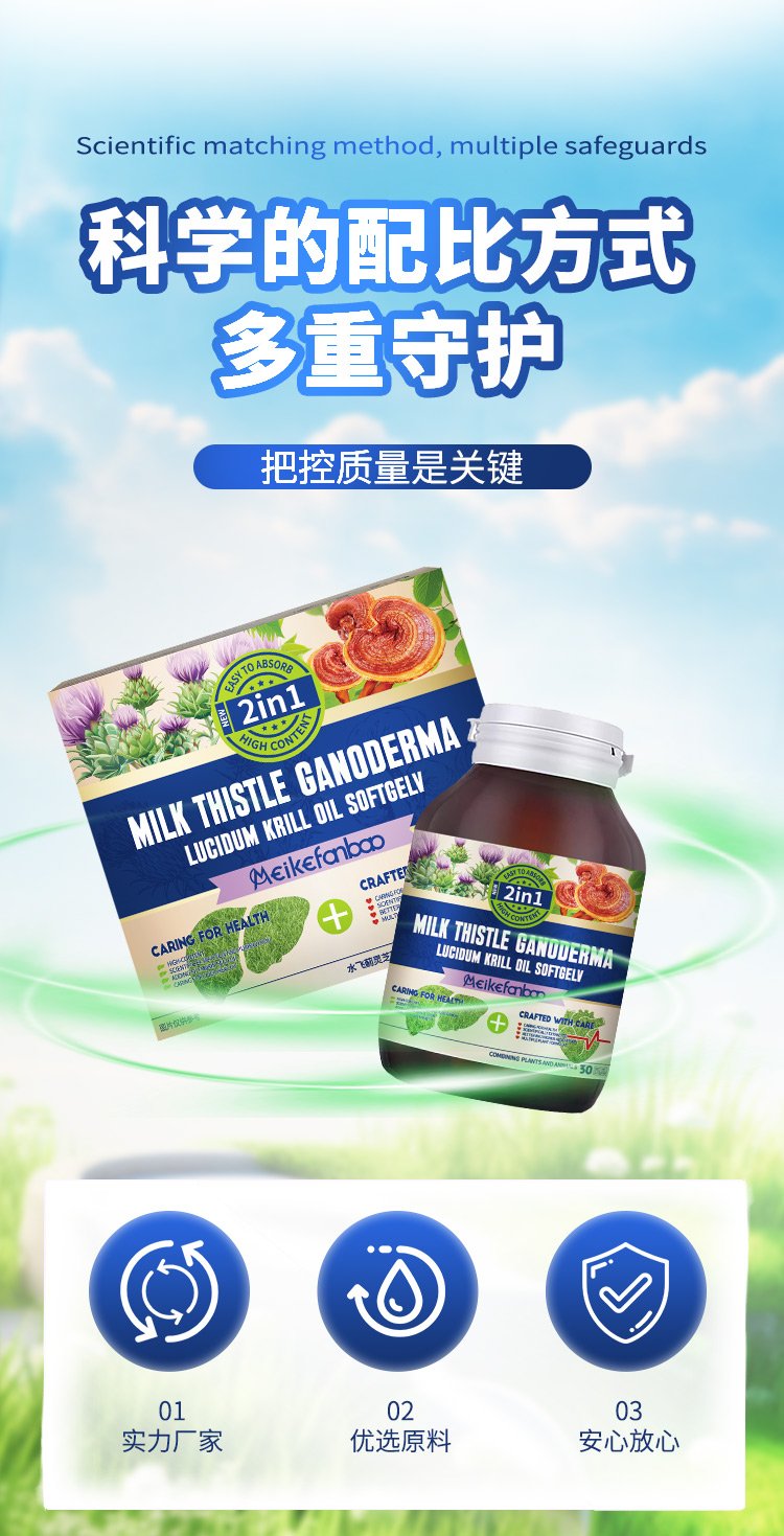 Meikefanbao – MILK THISTLE GANODERMA LUGIDUM KRILL OIL SOFTGELV💁