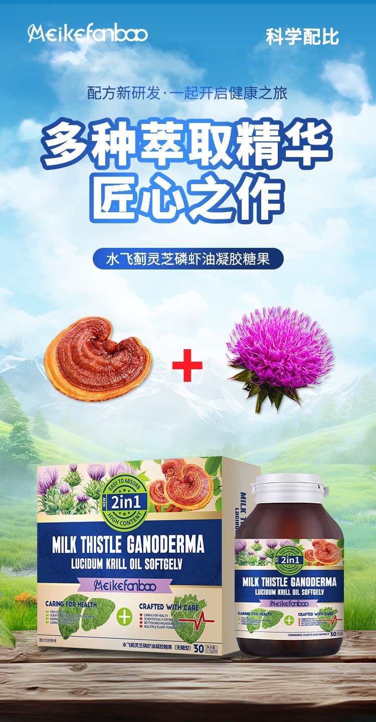 Meikefanbao – MILK THISTLE GANODERMA LUGIDUM KRILL OIL SOFTGELV💁