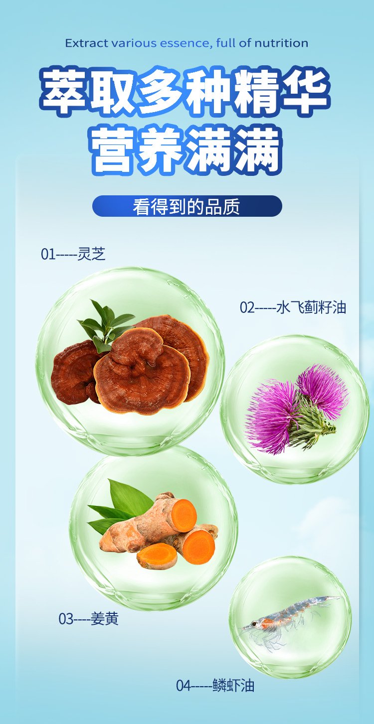 4. Silymarin protects the liver and stomach, Ganoderma lucidum is the gem of the liver to promote cell regeneration, and krill oil is better for cardiovascular care.